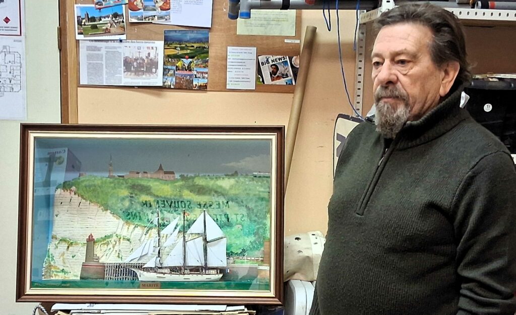 En début d’année, Daniel renouvelait son geste par le don à l’Association d’un diorama du » Marité sortant du port de Fécamp sous les bons auspices de la chapelle N-D-du-Salut « .