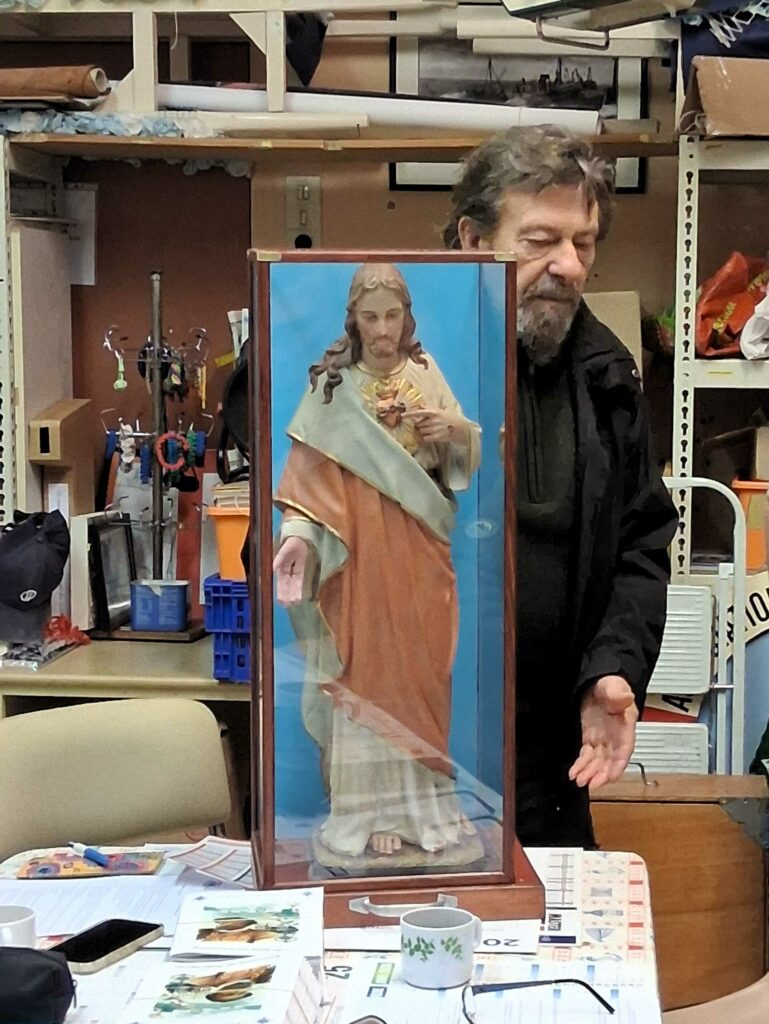 Plus récemment, Daniel a pris soin d’une statuette du Sacré-Cœur de Jésus que lui avait confié le Bureau afin de la nettoyer et de la doter d’une protection, réalisée par ses soins.