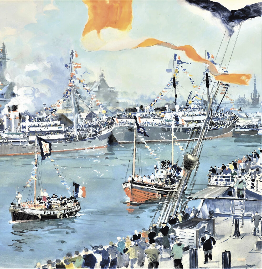 ~ 11h, église Abbatiale le cortège se rend à l’ancien musée du ‘petit parc’ (centre des Arts). Des gerbes sont déposées par les autorités et personnalités, au pied du cénotaphe à la mémoire des marins disparus ou péris en mer.
